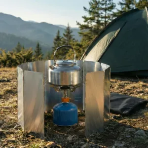 The stove shield made our camp cooking so much easier. Even on windy hills, flames stayed put and it packed into my backpack easily.