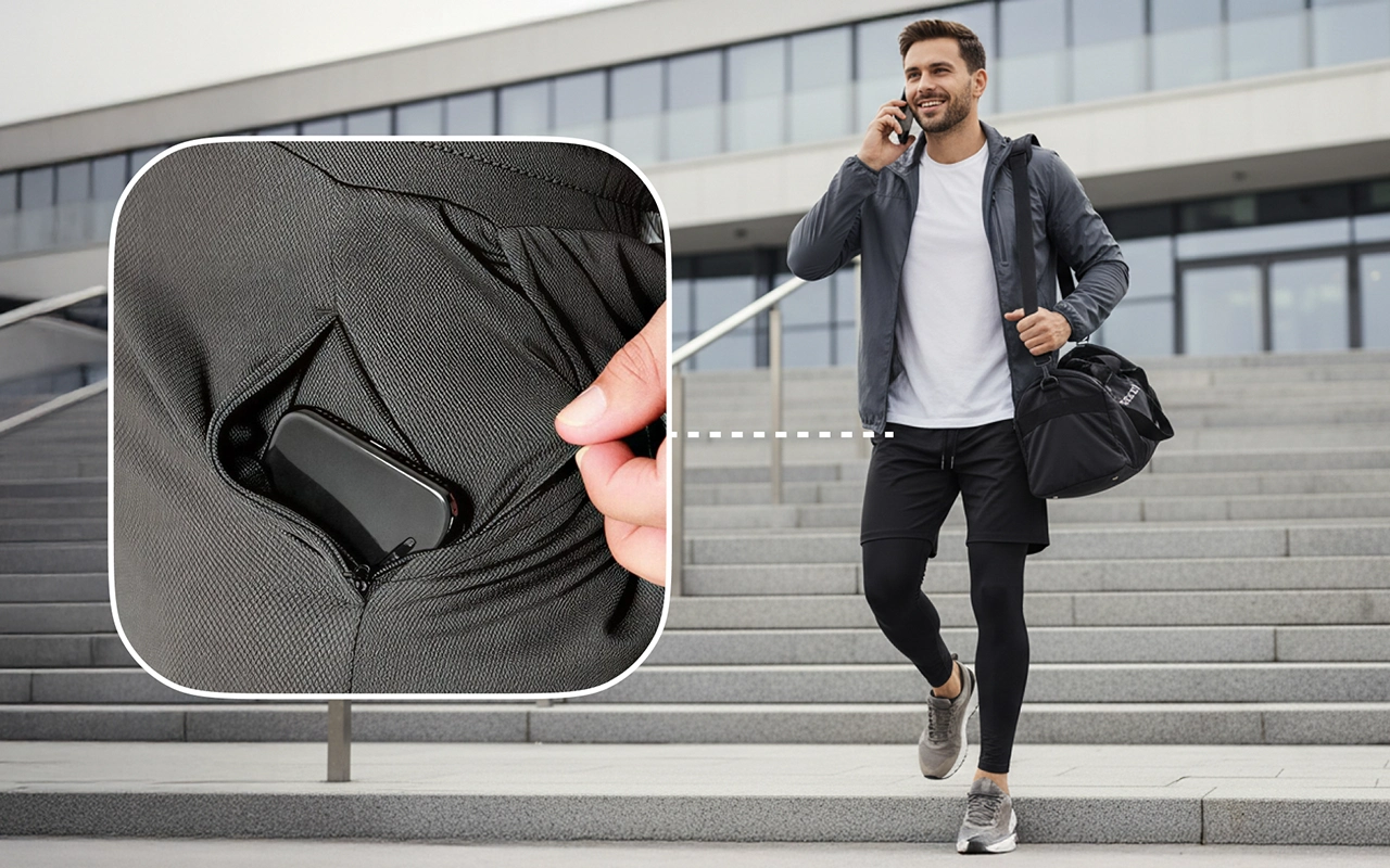 Zipped pocket is a lifesaver for my phone. Can’t believe how lightweight and cool the fabric is, and they fit great from warm-up to cooldown.