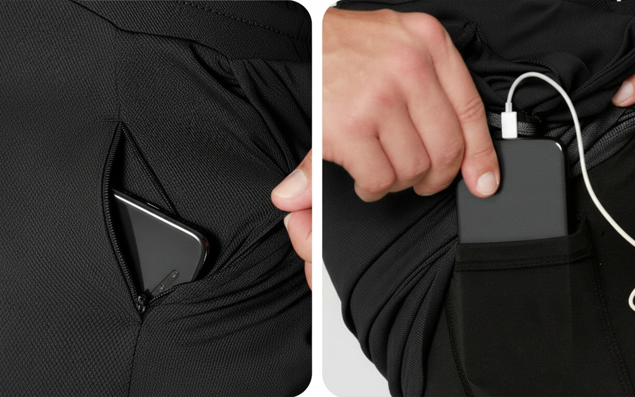 Zipped and side pockets hold your phone and keys safely. Enjoy running or lifting with nothing bouncing or shifting.