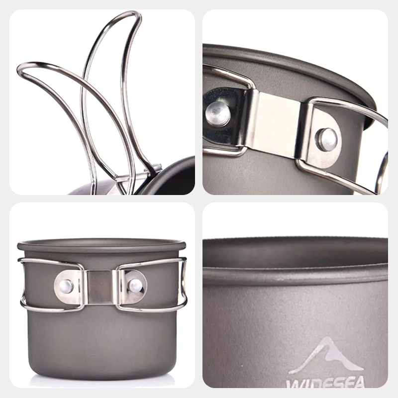 Use this camping cup on my allotment for tea breaks. Boils quickly on a tiny burner and wipes clean with just a little water and cloth.