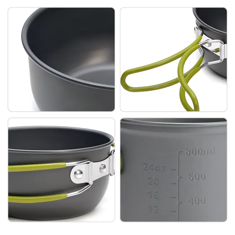 camping cooking pot set, camping tableware set, outdoor tableware set, camping pot set