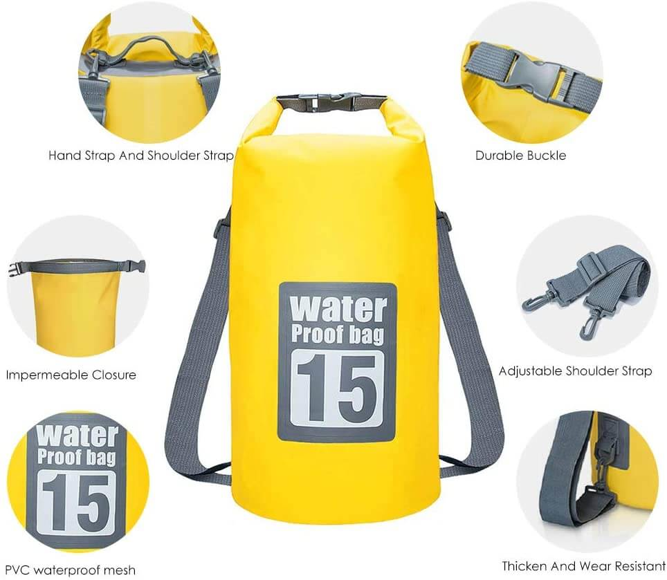 ✔️ LARGE STORAGE CAPACITY — Designed for travel adventures and water sports, the bag has a 5, 10, 15, 20, and 30-litre storage capacity.