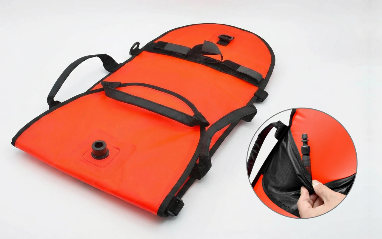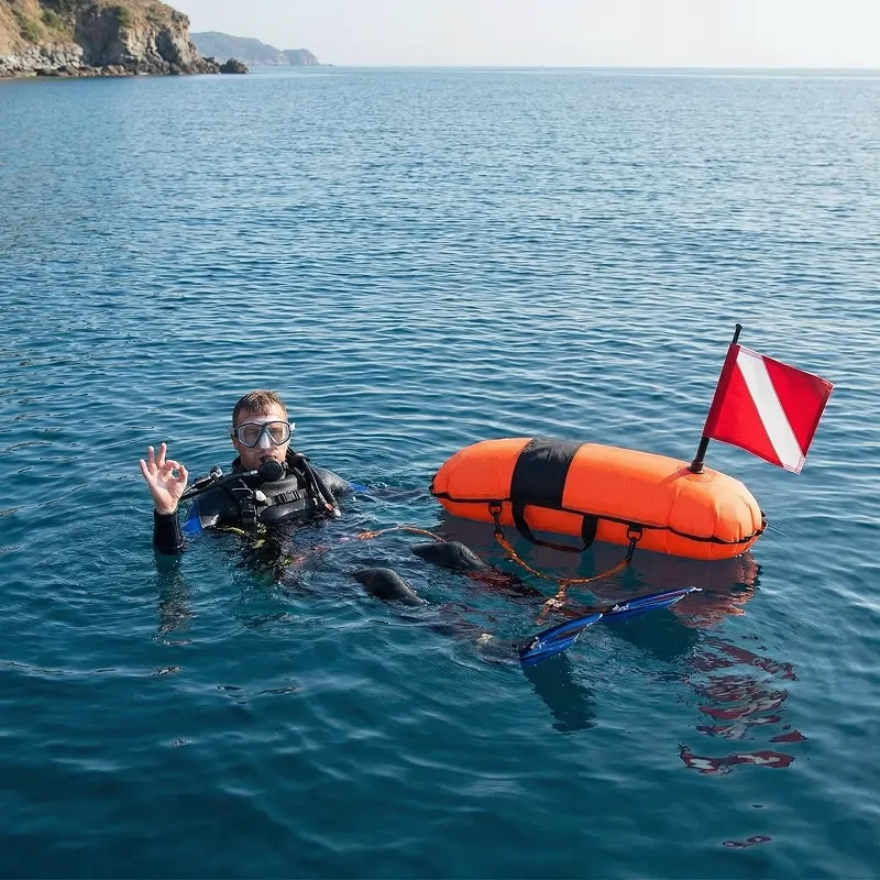 Took this buoy on a kayak and dive weekend. Packs down light, inflates fast, and the straps held my small dry bag while I swam back to shore.