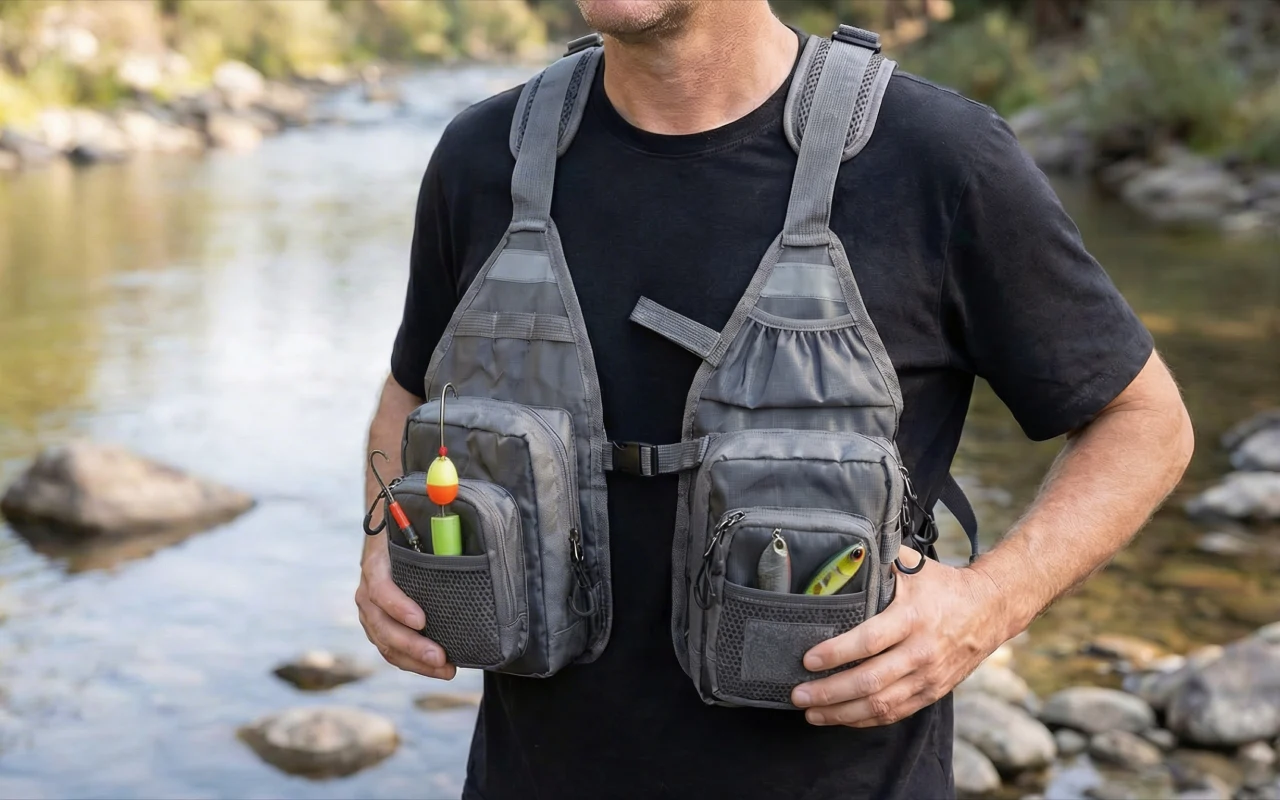 I keep this chest pack stocked for quick evening sessions. Slide it on, snap the buckle, and I’m on the river with all my gear in reach.
