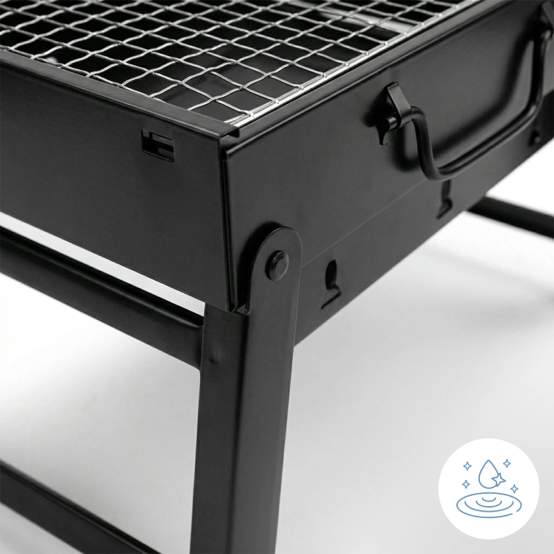 Bought this foldable grill for beach trips with friends. It heats quickly, handles plenty of skewers, and the stainless surface wipes clean with just a damp cloth.