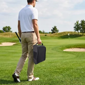 I walk to the course, so weight matters. This little bag feels almost weightless, and my shoes stay aired out the whole way home.