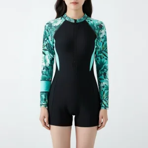 long sleeve surfing swimsuit, long sleeve surf bathing suit, surf one piece long sleeve