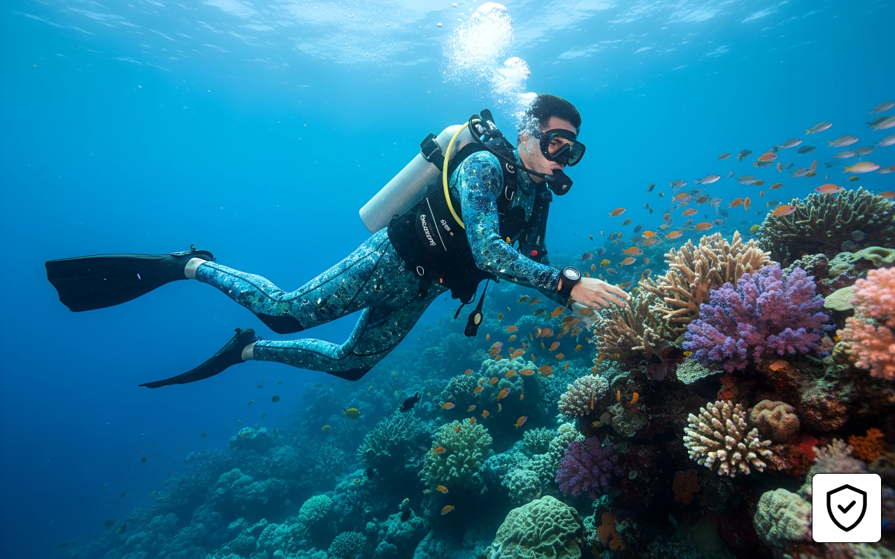 Went for a long dive, felt warm the whole time. Camo made me less noticeable underwater, caught more fish than usual.