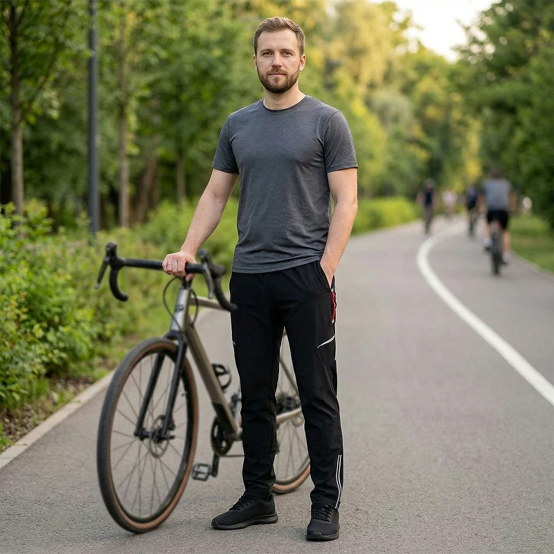 I bike to work daily and these sports pants make it so much easier. They stretch well, breathe nicely, and the pockets hold my keys safely.