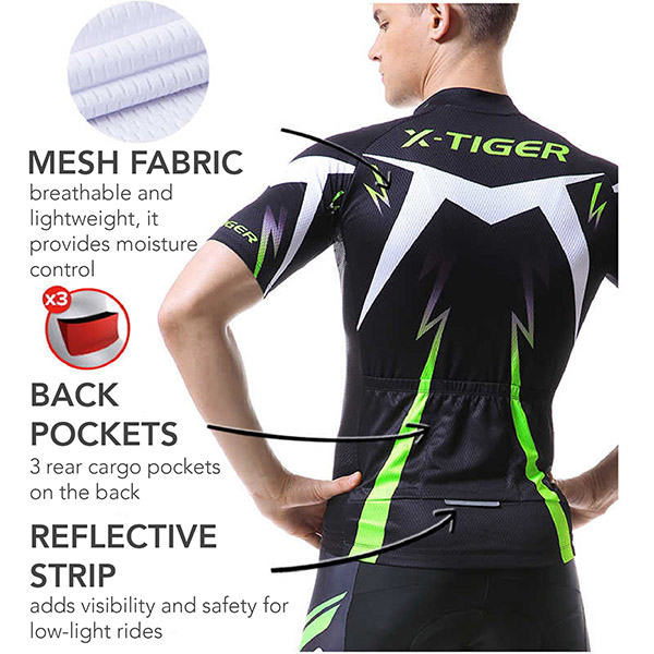 The fabric also offers stretch to move with your body through the cycling motion, almost like a second skin. The jersey offers complete freedom of movement. Plus, it has excellent perspiration dissipation. On the back of the jersey, there are 3 rear cargo pockets for easy in and out stored items. It features a reflective tab for an added safety element for low-light rides. This bike jersey also comes with a full-length zipper for easy on-off and ventilation during long rides. Get ready for a new bike adventure!