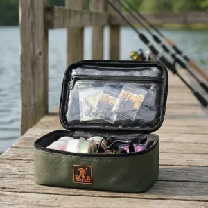 I like how this case fits under the boat seat. Dark color hides stains, and the inside pockets keep my bobbers, weights, and tools from bouncing everywhere.