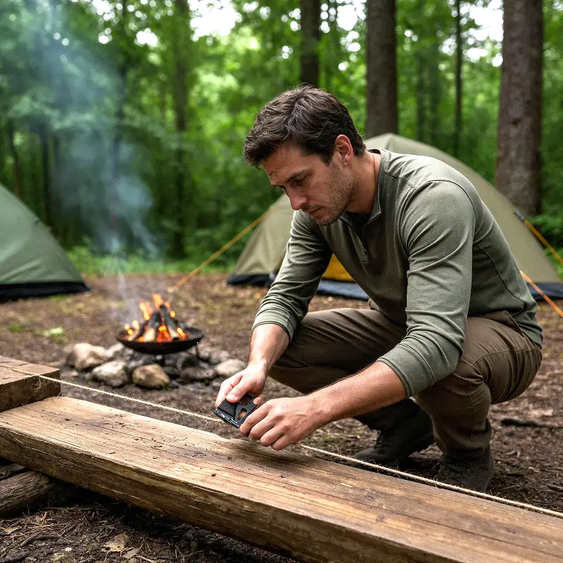 Camping was easier with this card. Opened cans, fixed some bolts, and even sliced paracord when I needed it.