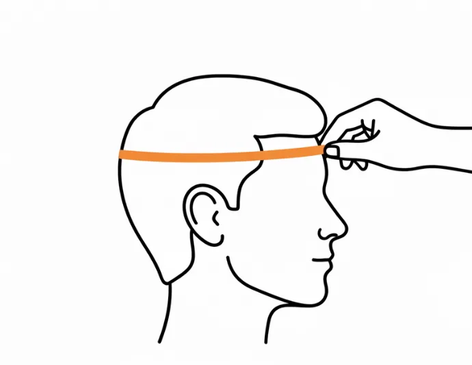 - 1. Wrap the measuring tape around the widest part of the head, just above the eyebrows and ears.