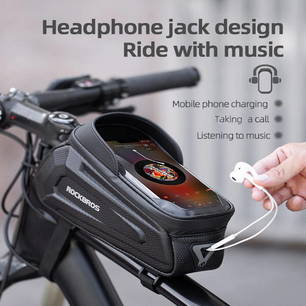 The THREO Bicycle Bag is designed to place the phone on your bike’s top tube for easy access. With our bag, you can pick up the phone and use GPS navigation during riding. It also features a headphones jack design to allow you to listen to music. Our Phone Bag is constructed with a sun visor, assisting to see the phone screen clearly even under strong sunlight. Moreover, the top of the case is a highly-sensitive TPU film that doesn’t limit the touchscreen and allows for easy phone operation.