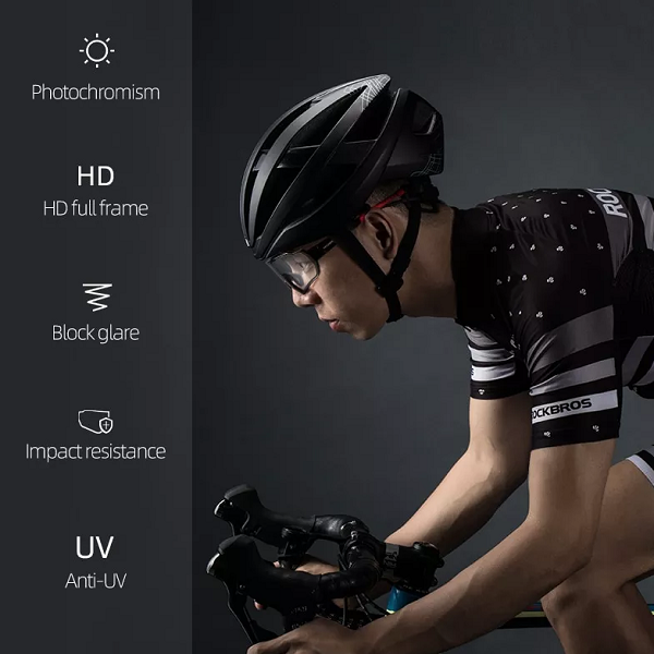 THREO Photochromic Cycling Glasses perfectly protect your vision from the sunshine. The lenses automatically shift the level of darkness and brightness based on various degrees of ultraviolet radiation. Plus, our glasses offer a perfect adaptation to all light and weather conditions. Thanks to this technique, you will never need to switch glasses while performing different outdoor activities. What is more, the widespread lenses offer a larger field of vision and protect your eyes from wind, dust, and mosquitoes.