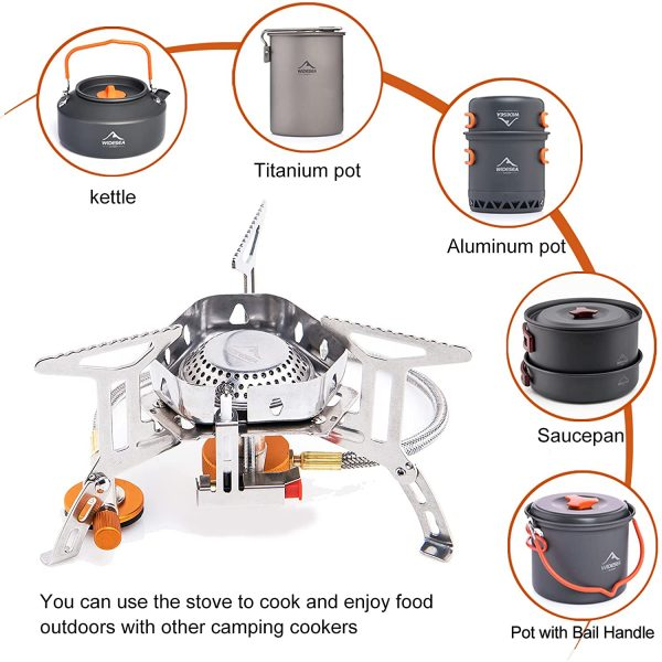 ✔️ COMPATIBLE WITH OTHER CAMPING COOKERS — This gas stove can be used with different camping cookers like aluminum pot, titanium pot, saucepan and etc.