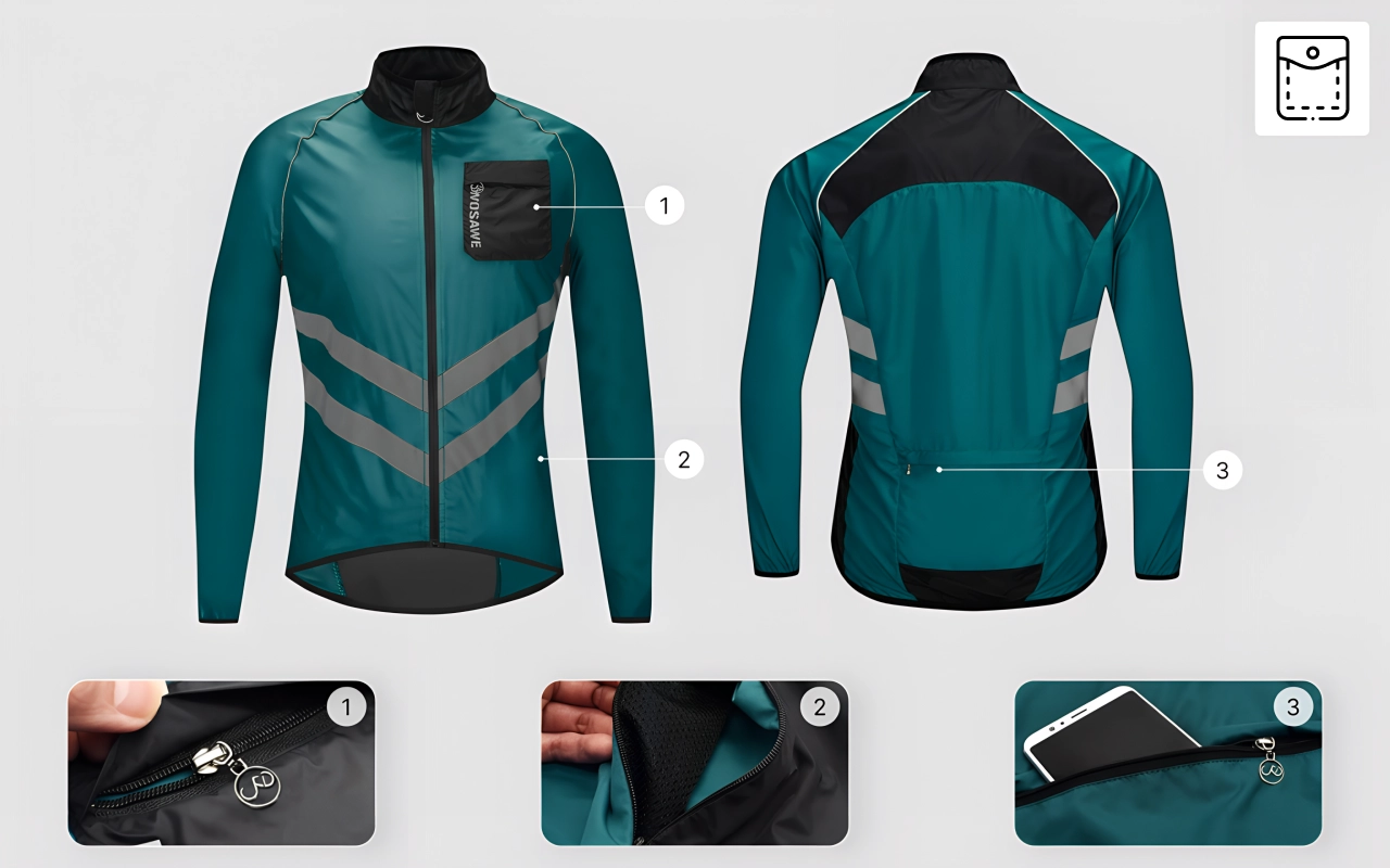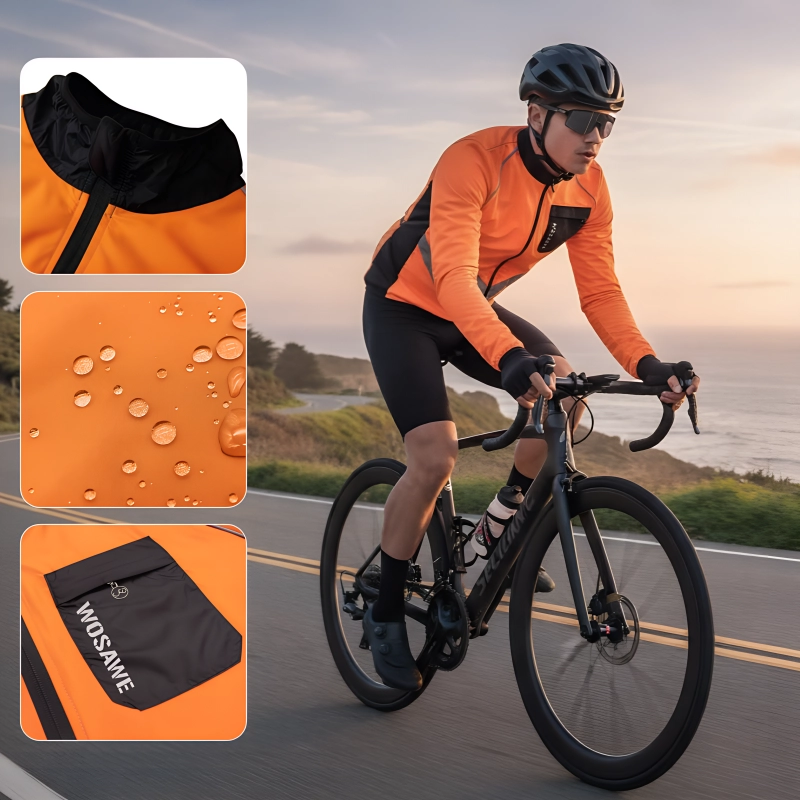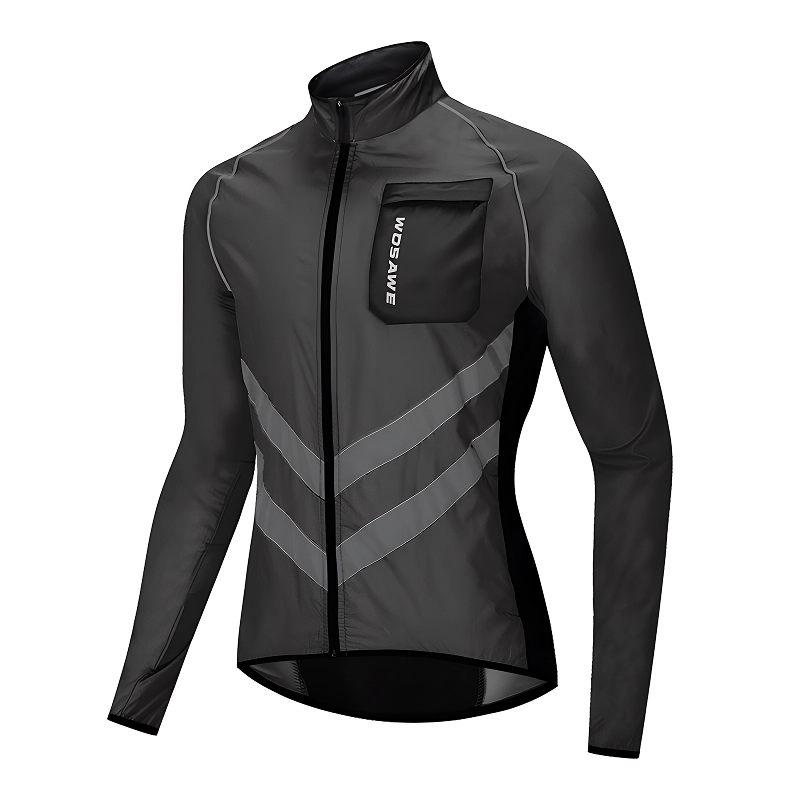 Even on windy days, this keeps me warm. The reflective design on the back makes me feel safer when riding after sunset.