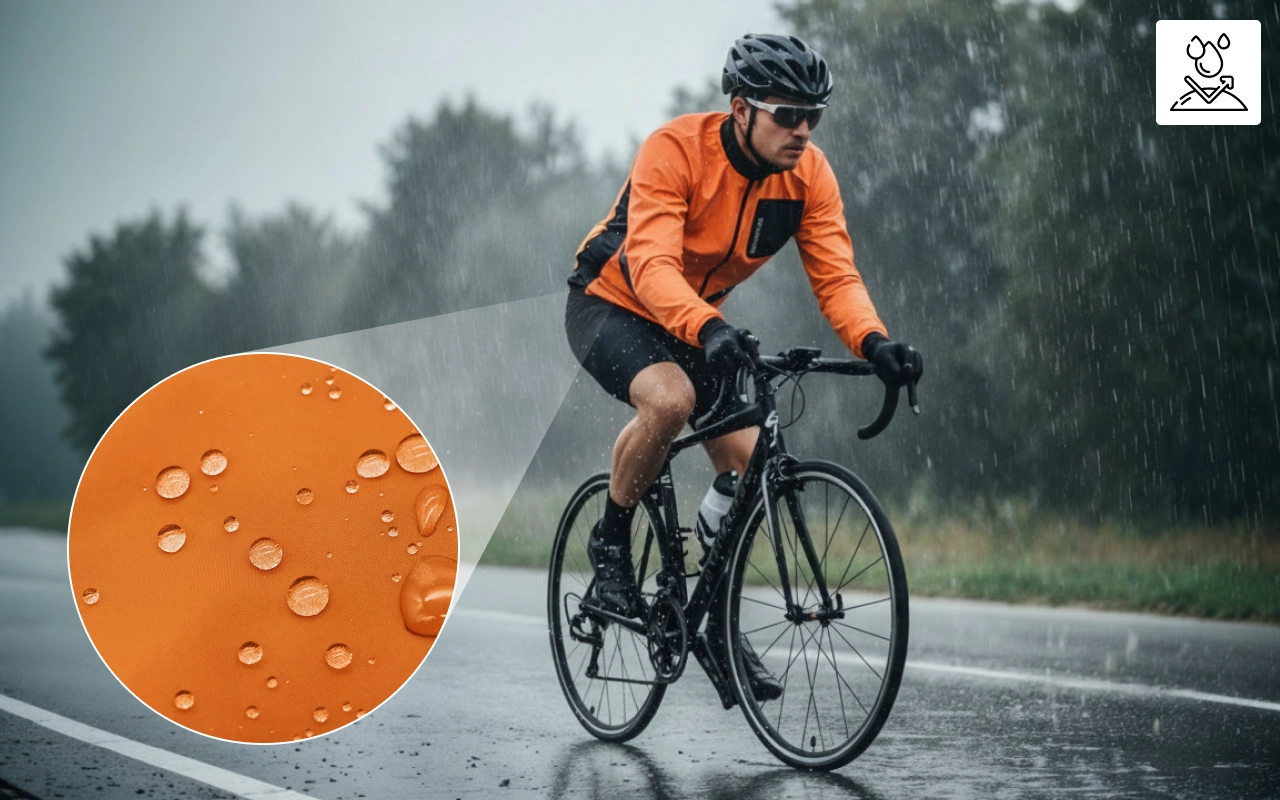 Water-repellent fabric helps keep you dry in light showers. Wind-resistant material means you stay warm on cooler rides.