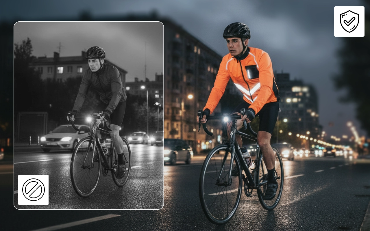 Reflective stripes on the front and back shine at night. You are much easier to spot on busy roads after dusk.