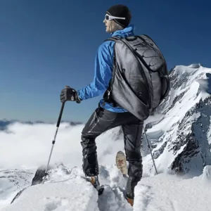 This ski backpack easily fits all my gear with room to spare, and it’s fantastic during snowy days. The weight distribution makes it feel light, and I love the standing mat feature, so nice for changing boots without wetting socks. Definitely my favorite for ski trips!