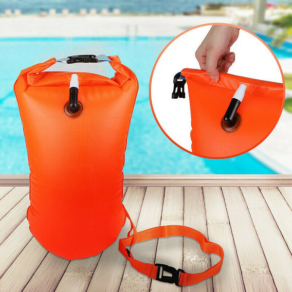 Our swimming buoy is made of durable PVC fabric, which is soft, comfortable, and won’t leak. The strong fabric ensures secure waterproof protection for your belongings. What’s more, this buoy is very easy to use. It has an easy-inflating air nozzle, which can be quickly and easily deflated when needed. Just place your belongings inside the dry bag, roll down the top, clip to close, and inflate to make it float. The buoy’s belt is highly adjustable to fit around your waist.