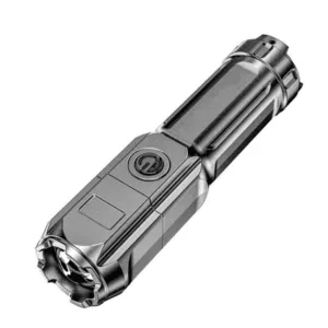 Threo flashlight is a small, USB-rechargeable telescopic torch. It provides bright, long-range illumination for outdoor activities and features a zoom function to adjust the beam focus as needed.