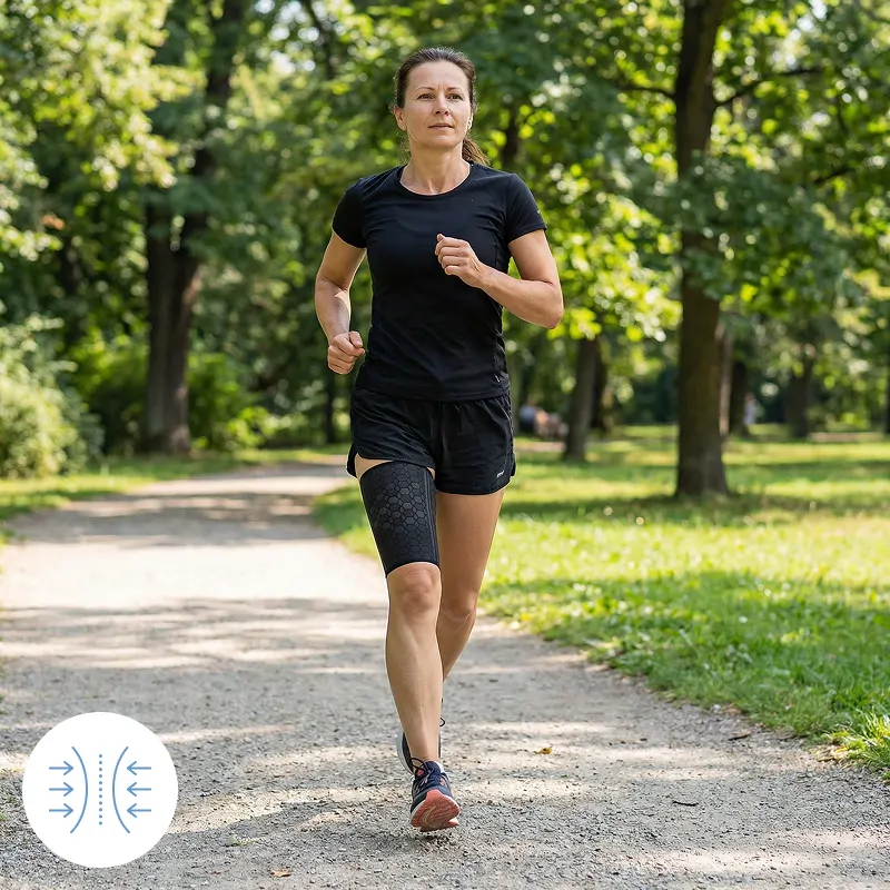 Got this thigh band after my doctor suggested extra support. It fits smoothly under jeans, doesn’t slide, and my daily walk feels comfortable again.
