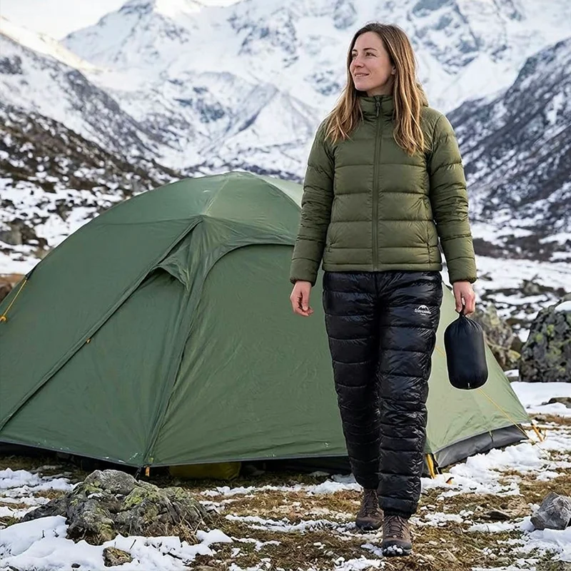 Threo down trousers feel light and never slow you down. Packing is simple because they fold small, saving precious space.