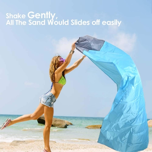 This waterproof outdoor blanket is made of premium durable ripstop parachute nylon and won’t rip or tear no matter how hard it is rubbed. It comes with a compact drawstring pouch with a carabiner — very lightweight and comfortable to use. At the end of the day, simply fold this beach blanket into its compressed size and pack it into its travel pouch. The blanket is breathable and machine washable, dries quickly but never fades. It is equipped with 4 fixed anchors, so you don’t have to worry about the beach mat being disturbed by wind and sand.