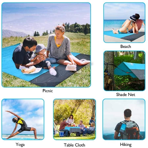 The THREO Beach Blanket can also be used as a rain shelter (it has a waterproof level higher than the umbrella), an emergency mat/pad while traveling, a picnic blanket, a water-resistance tarp, beach blanket, pocket blanket, ground cover, waterproof barrier, etc. It can also be used as a toy mat for children at home. Hang it on your backpack and our beach mats will surprise you on every occasion.