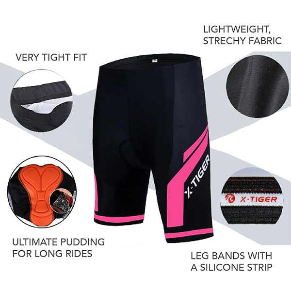 The exquisite women’s cycling shorts are developed to perform for every body shape. Made of stretchy durable fabric, the shorts provide a structured and comfortable fit that moves with your body. They ultimately retain shape and firmness. The leg bands with a thin strip of silicone that holds shorts in place while riding. 3D Coolmax gel pad with increased ventilation is designed specifically for female riders. The front panel is doubled over to prevent digging in when riding and protect the sit-bones in right place.