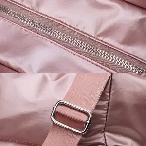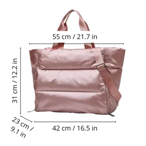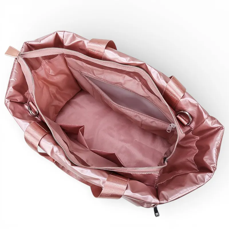 Roomy tote fits all my gym stuff and my yoga mat. Wet clothes pocket is super handy after swimming class. Really helps me stay organized.