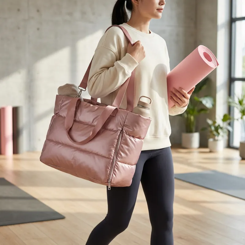 Tote holds everything for yoga and spin class, even my chunky towel! I always feel ready to go wherever I need.