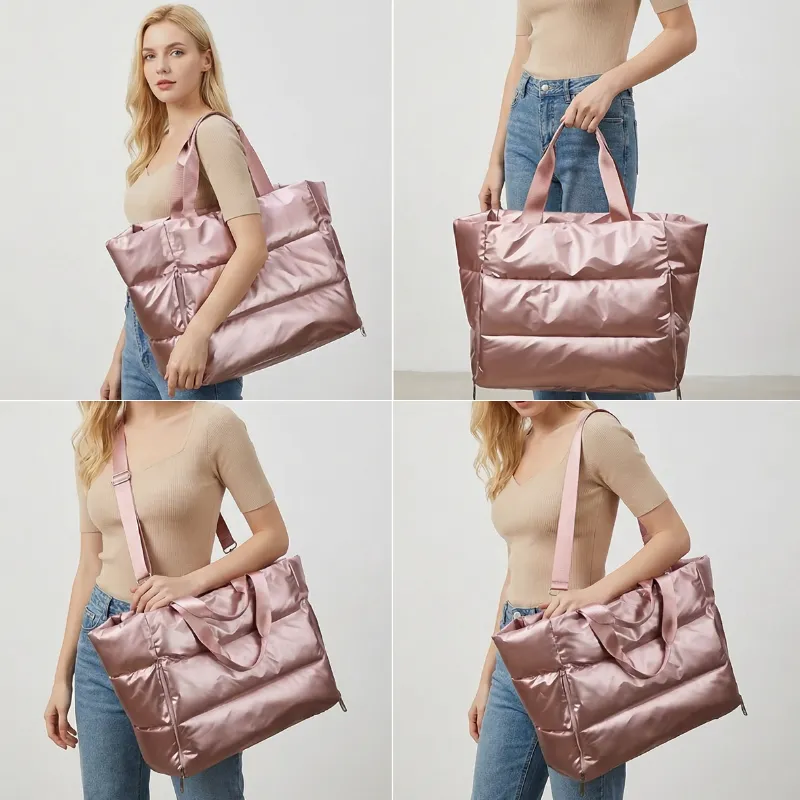 Handles are comfy and don’t dig into my shoulder even when I carry heavy shoes. The color stays bright even after months of use.