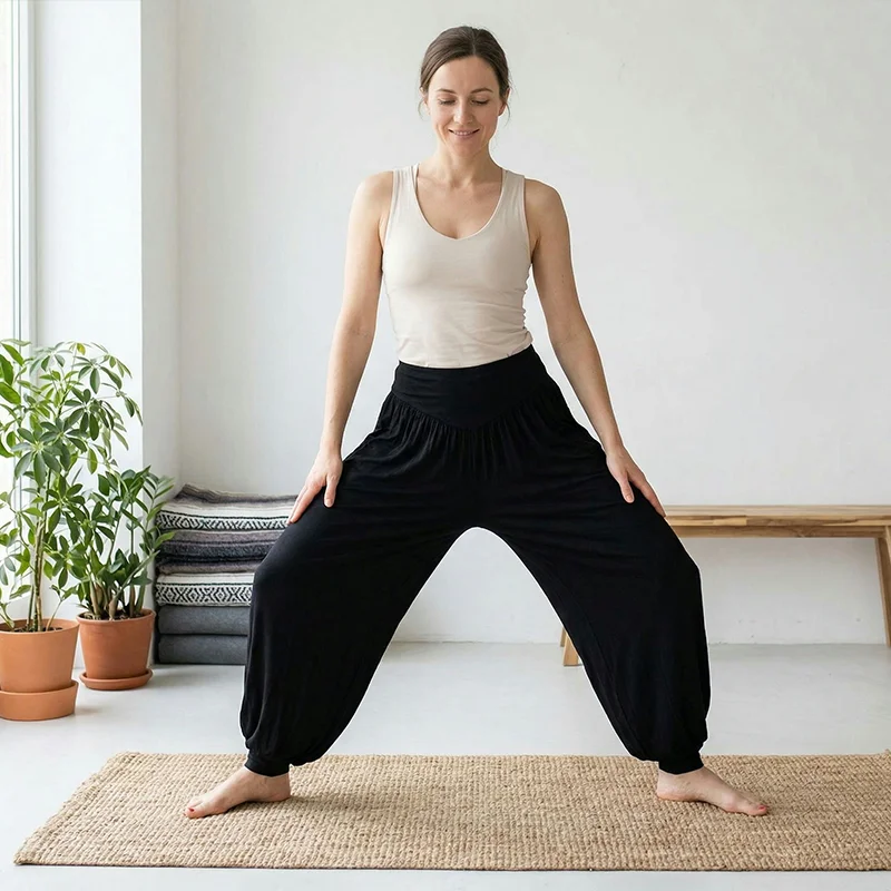 These harem pants are my new favorite for yoga and lazy Sundays. They stay, never cling, and the fabric feels like soft pajamas all day.