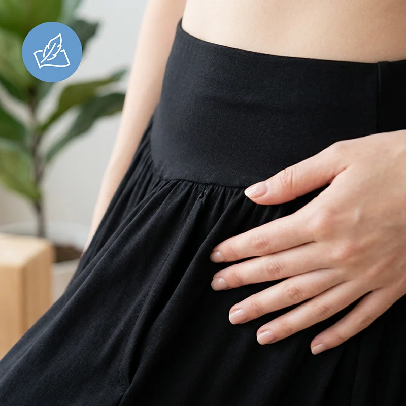 I wear these harem pants to hot yoga and they keep me cool the whole class. They don’t stick when I sweat and feel gentle even after an hour.