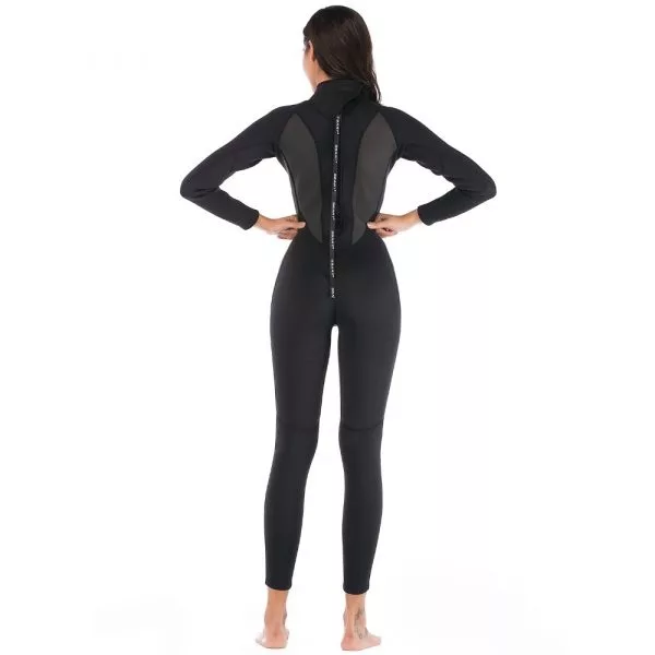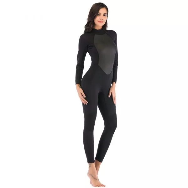 This comfortable wetsuit features the following: smooth skin panels to ward off wind and add warmth, durable sealed seams with internal taping at stress points, a full back zipper for easy entry/exit, kneepads, and a flattering fit. It can fit various figures/body types. Elastic nylon with low resistance helps reduce wear and protect the wetsuit from the friction of diving equipment. Also, its full-body coverage design with UV UPF 50 sun protection prevents your skin from sunburn. The suggested water temperature is 18 °C +.