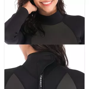This comfortable wetsuit features the following: smooth skin panels to ward off wind and add warmth, durable sealed seams with internal taping at stress points, a full back zipper for easy entry/exit, kneepads, and a flattering fit. It can fit various figures/body types. Elastic nylon with low resistance helps reduce wear and protect the wetsuit from the friction of diving equipment. Also, its full-body coverage design with UV UPF 50 sun protection prevents your skin from sunburn. The suggested water temperature is 18 °C +.